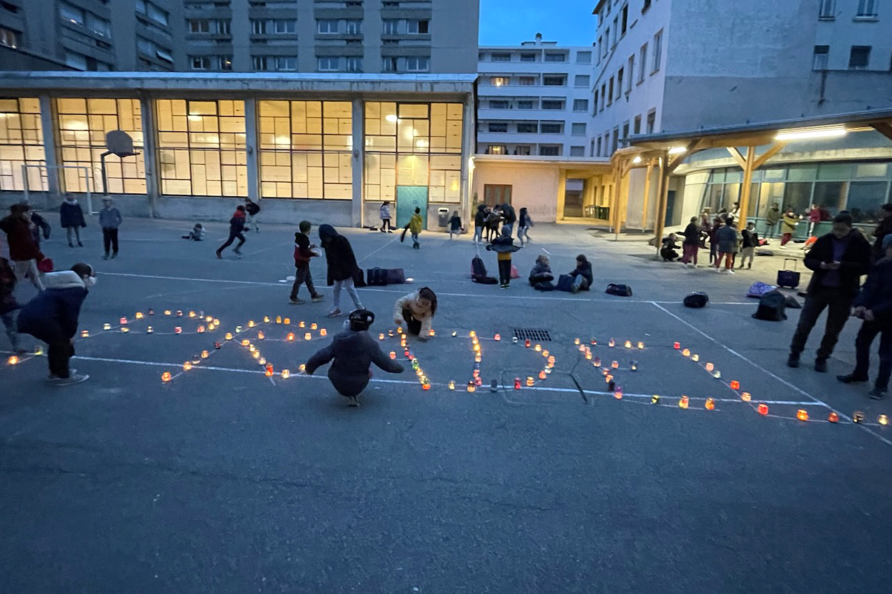 A l’occasion de la fête des Lumières, les élèves ont participé à ce grand événement lyonnais en illuminant la cour de récréation.