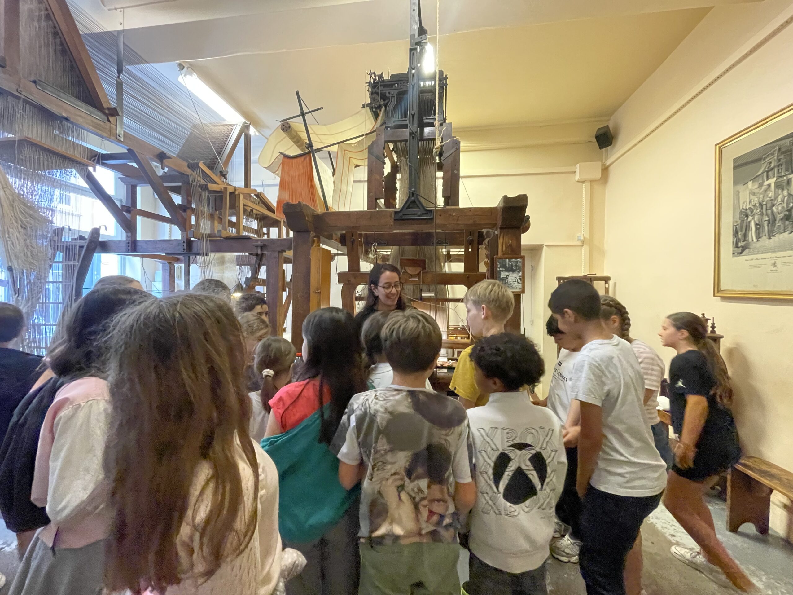 A travers les métiers à tisser de la maison des Canuts, ils ont découverts le bistanclac ! Ils ont assisté en direct à la confection d’un tissu en soie.