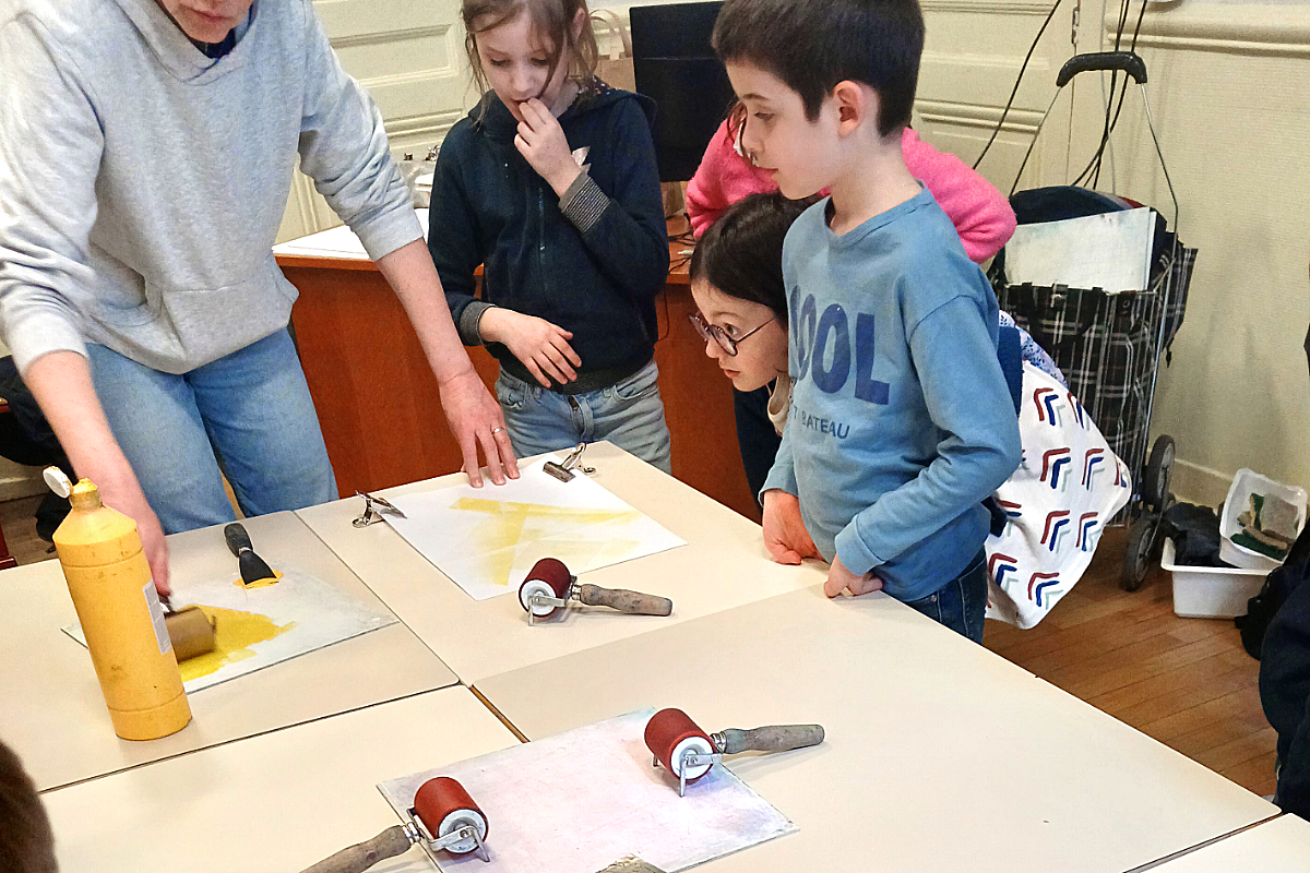 Les élèves de CP/CE1 ont à leur tour découvert et expérimenté des techniques d’impression avec le Musée de l’imprimerie et de la création graphique. Une journée durant, ils ont pu expérimenter la création de plaques d’impression à base de tam-gram et de pièces de Lego (Pixel Art).